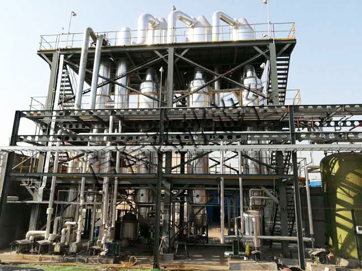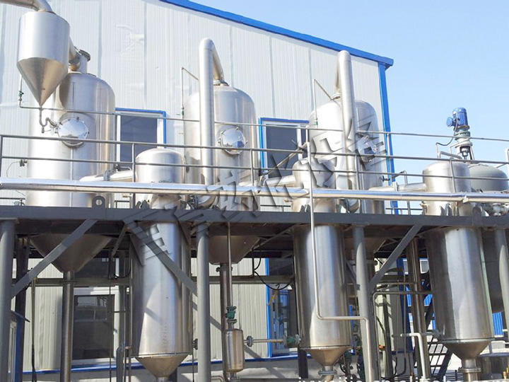 三效蒸發(fā)器主要由相互串聯(lián)的三組蒸發(fā)器、冷凝器、鹽分離器和輔助設(shè)備等組成。三組蒸發(fā)器以串聯(lián)的形式運(yùn)行,組成三效蒸發(fā)器。整套蒸發(fā)系統(tǒng)采用連續(xù)進(jìn)料、連續(xù)出料的生產(chǎn)方式。